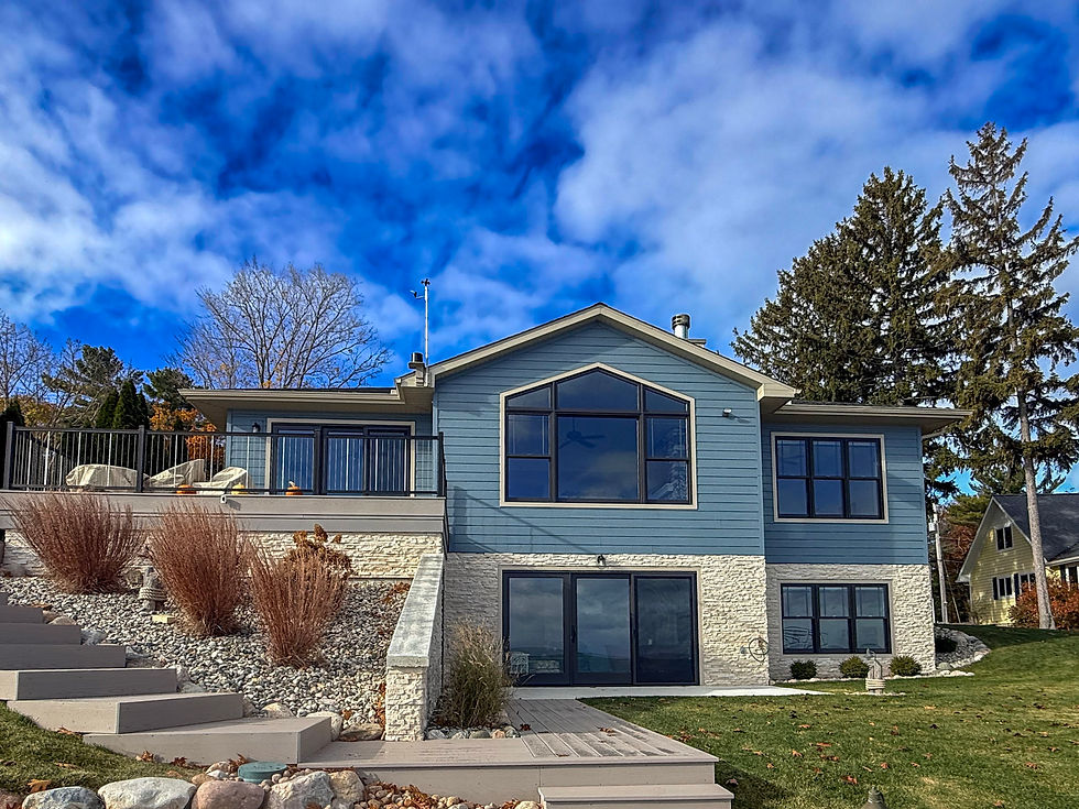 This beautiful home on Lake Huron features Marvin Ultimate Double Hung, Casement, and Awning windows, along with Marvin Ultimate Sliding French Doors.